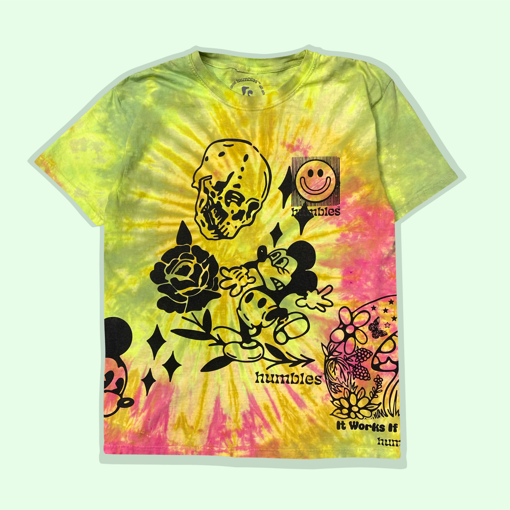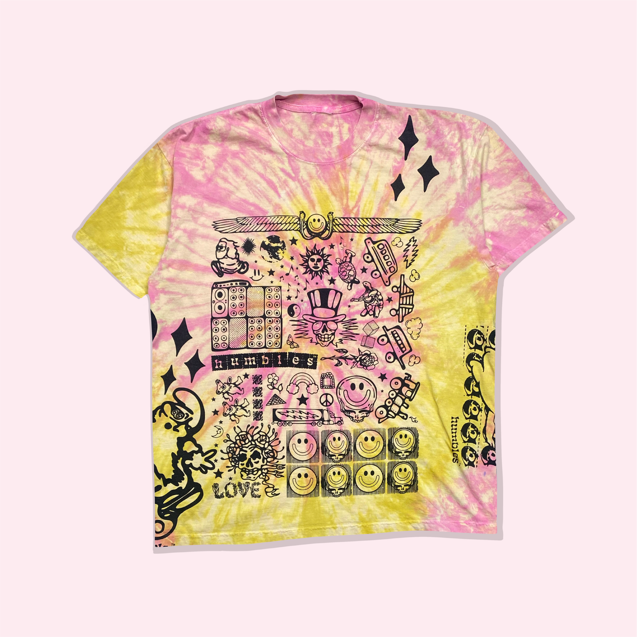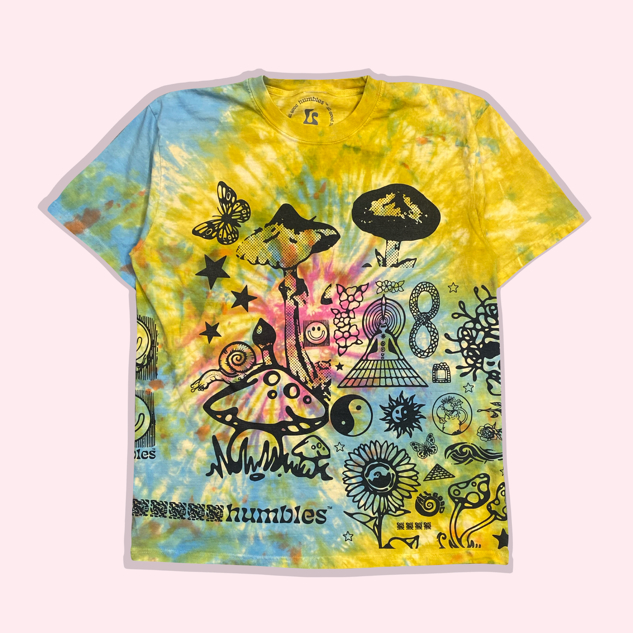 The All Over Test Tees Collection is built from the real rhythm of the Humbles™ studio. Each shirt features a curated mix of graphics arranged and printed by hand, designed to mimic the look and feel of the classic test tees you might find in an old school screen printing shop. Instead of random layers or accidental hits, every placement is intentional. The artwork is chosen, arranged, and printed to create a bold studio-made look that reflects a full year of production, experimentation, and creative flow.