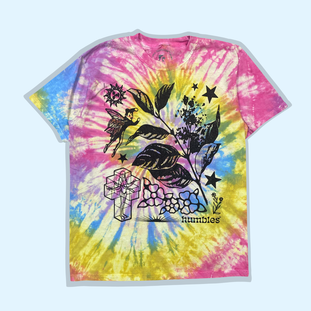 Each One Off Tie Dye Tee is a true one of one, created with a hand dyed base and a single curated graphic pulled from the Humbles™ studio. These are not all over prints. Each shirt is built around the movement of the dye, with the print placed intentionally to complement the pattern and color flow. No two pieces will ever look the same.