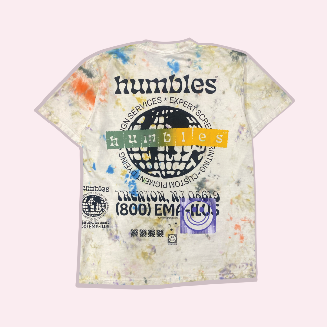 Each Testers tee is created using curated graphics pulled from across the Humbles™ studio. Rather than layering prints randomly, every graphic is intentionally positioned on the shirt to mimic the look and feel of a classic print-shop test tee, but with purpose and composition. No two are alike, and each one carries the visual history of the studio’s year of making.