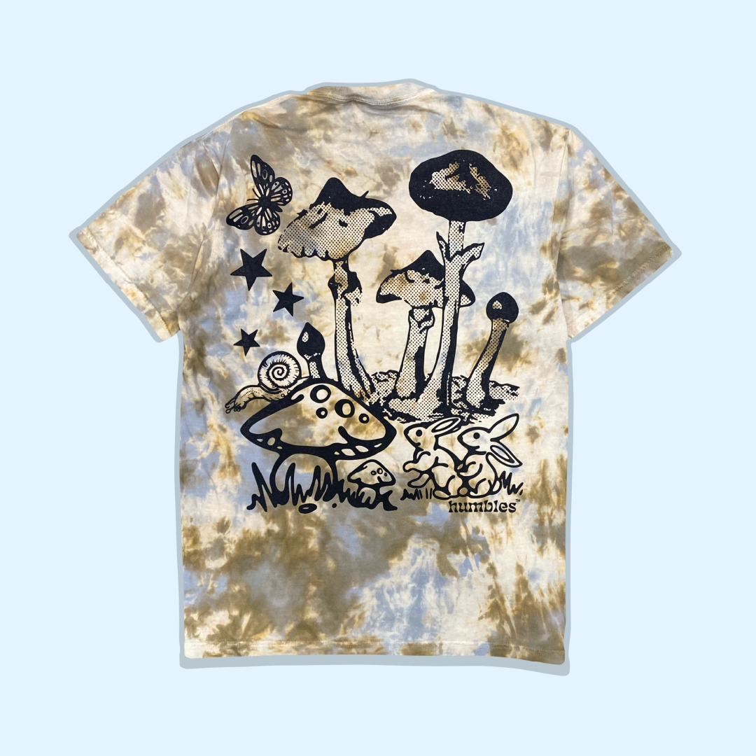 Each One Off Tie Dye Tee is a true one of one, created with a hand dyed base and a single curated graphic pulled from the Humbles™ studio. These are not all over prints. Each shirt is built around the movement of the dye, with the print placed intentionally to complement the pattern and color flow. No two pieces will ever look the same.