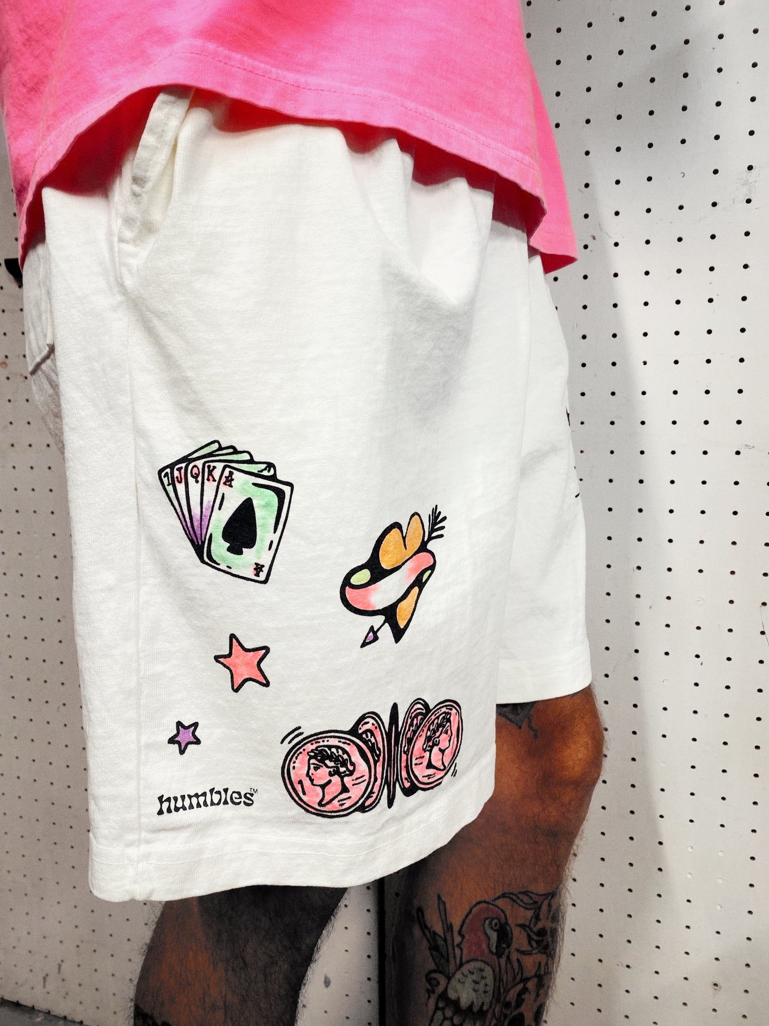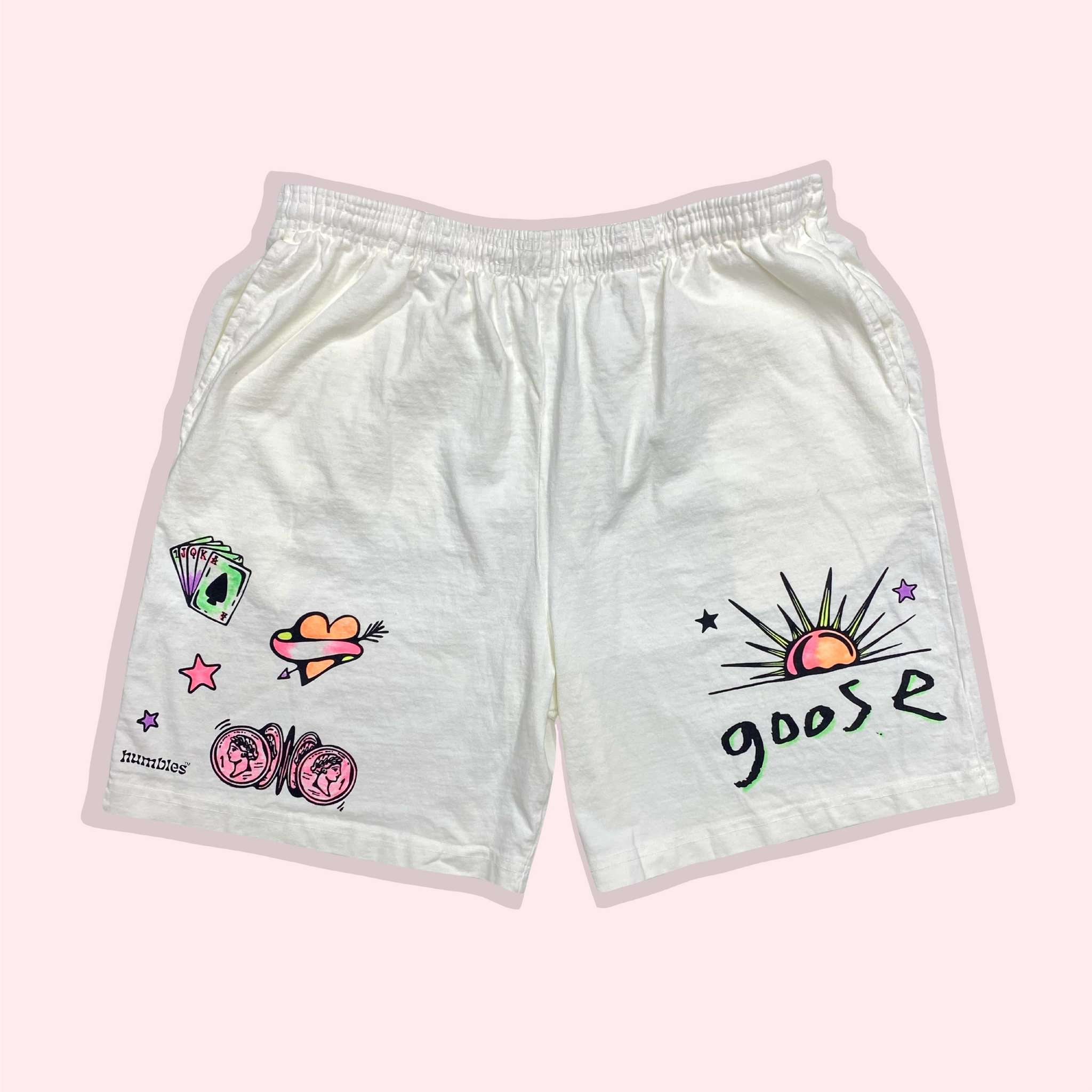 Each pair is hand finished with bright highlighter embellishments, creating a unique look on every garment.